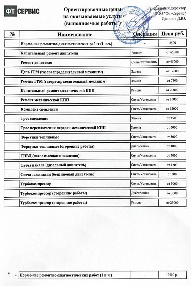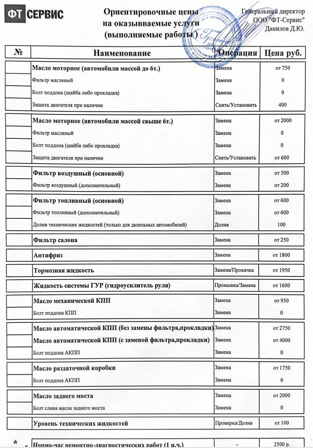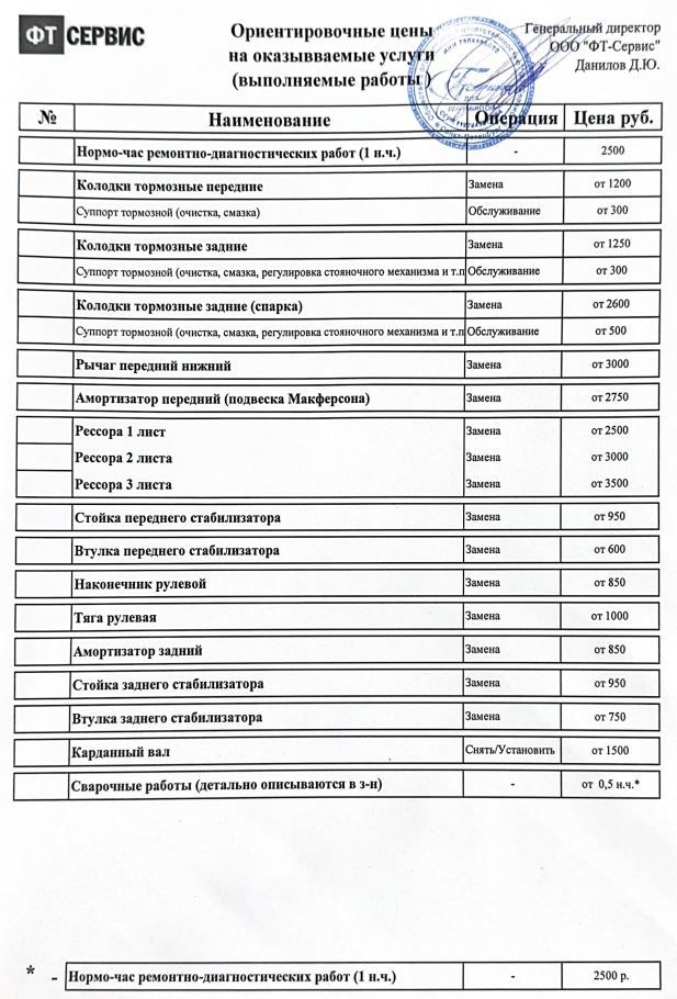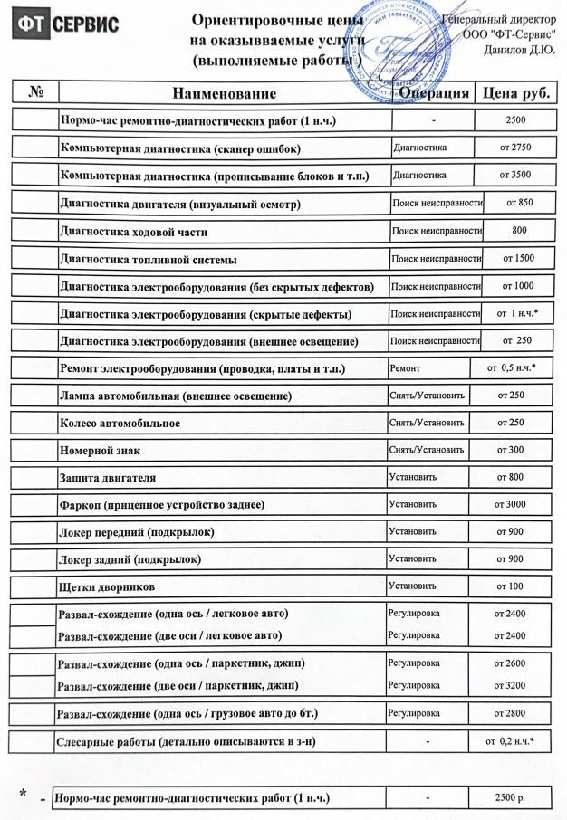 Просьба перед оформлением заказа-наряда уточнять актуальную цену у мастера-приемщика.